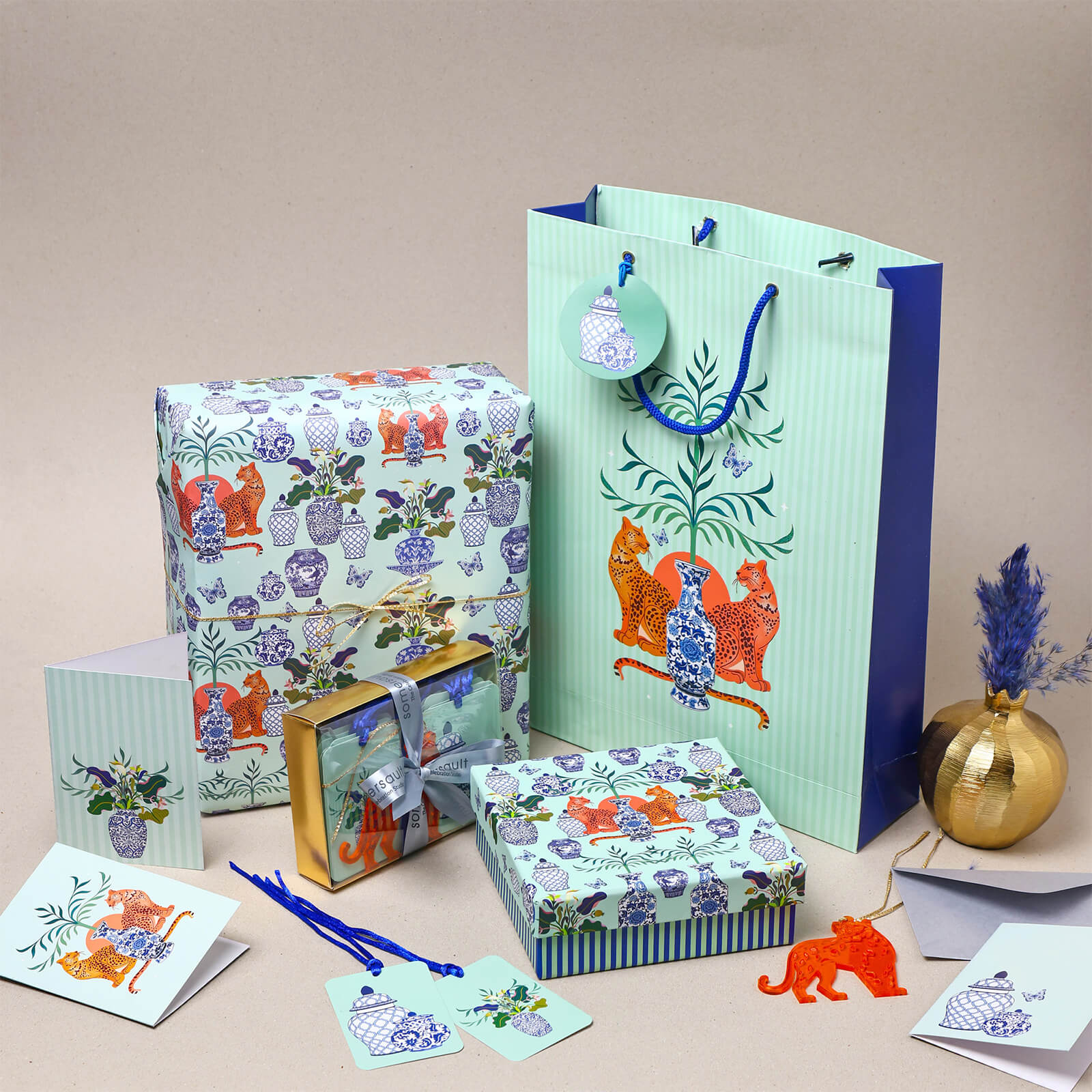 From charming Party Animals to opulent Cheetah Chutzpah - coordinated wraps, boxes, and tags that turn gift-giving into quiet artistry.