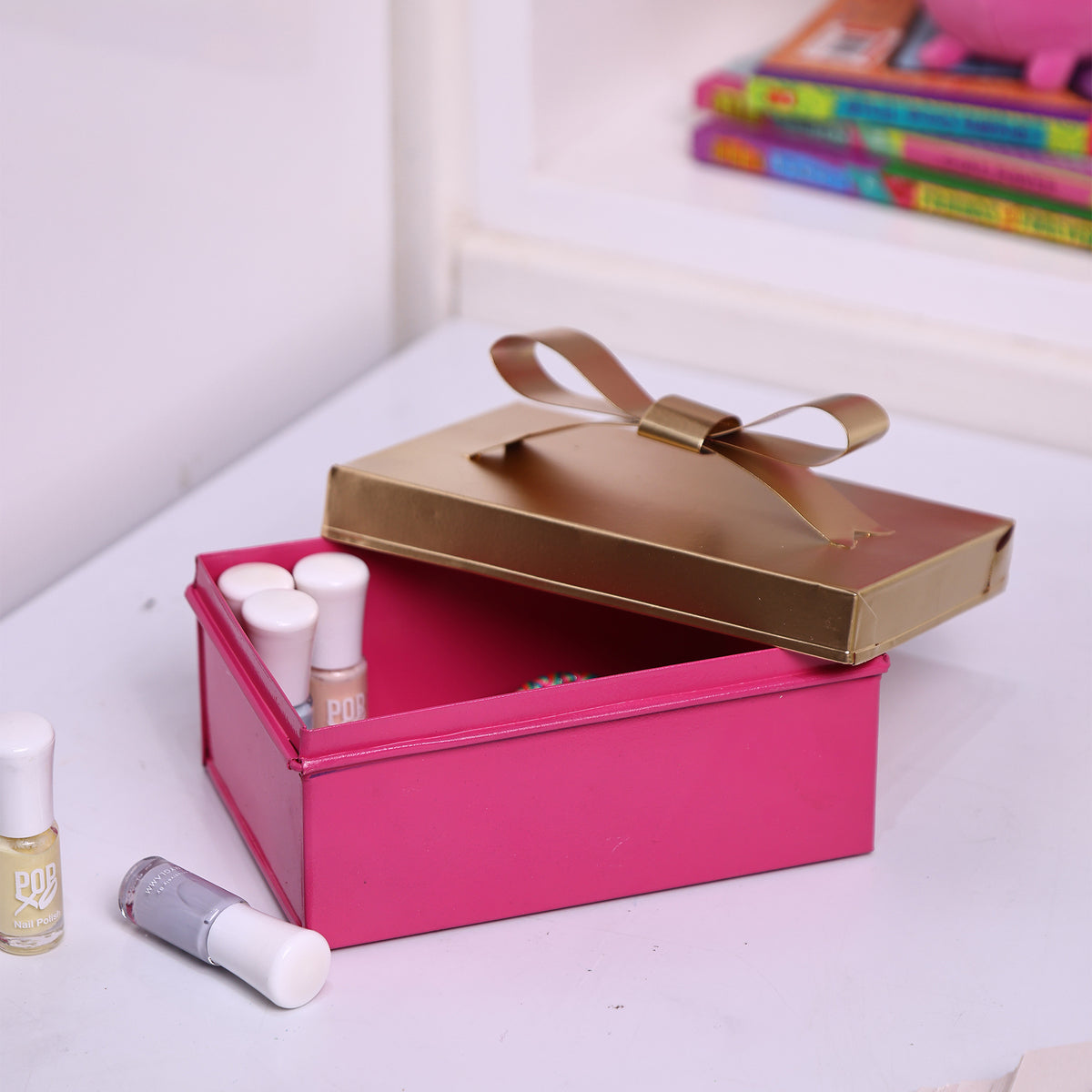 Perfect for all things dainty and dear: think trinkets, envelopes, polaroids, or your favorite nail paints. Whether placed on a vanity or desk, it brings a certain sass to storage — without shouting for attention.